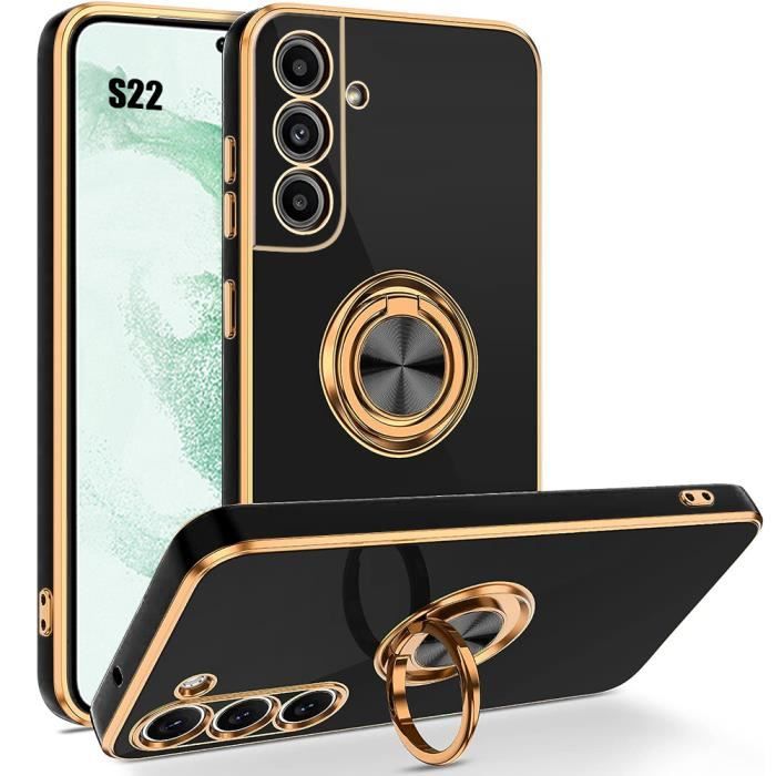 Silicone Case - Booling - for Samsung Galaxy S22 - 360° Rotating Ring Stand - Black - Flexible