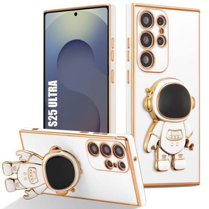 Case for Samsung Galaxy S25 Ultra, Silicone Protection with 3D Astronaut Stand - White