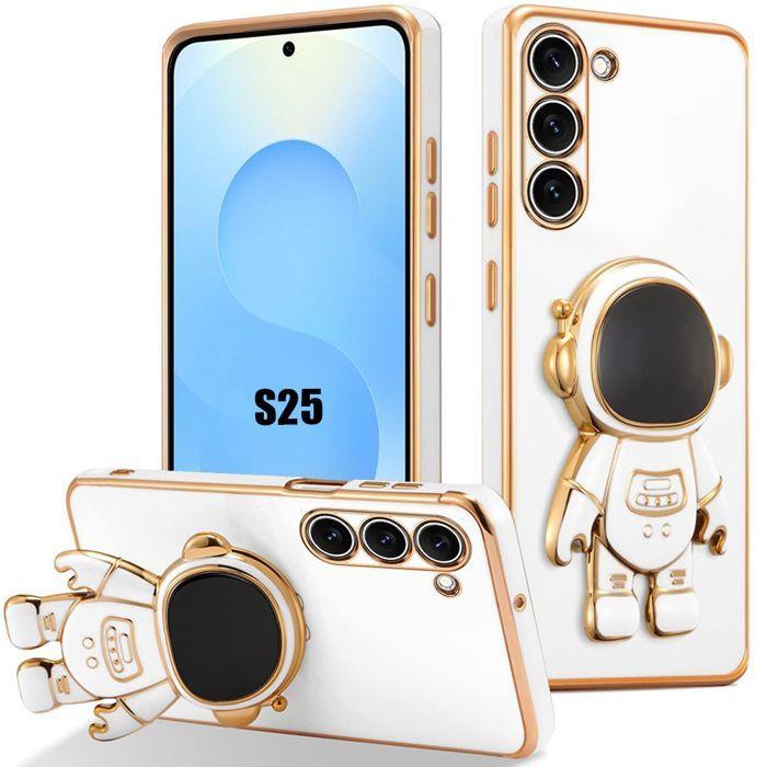 Coque pour Samsung Galaxy S25, Antichoc TPU Anti-Rayure Blanc avec Support Astronaute