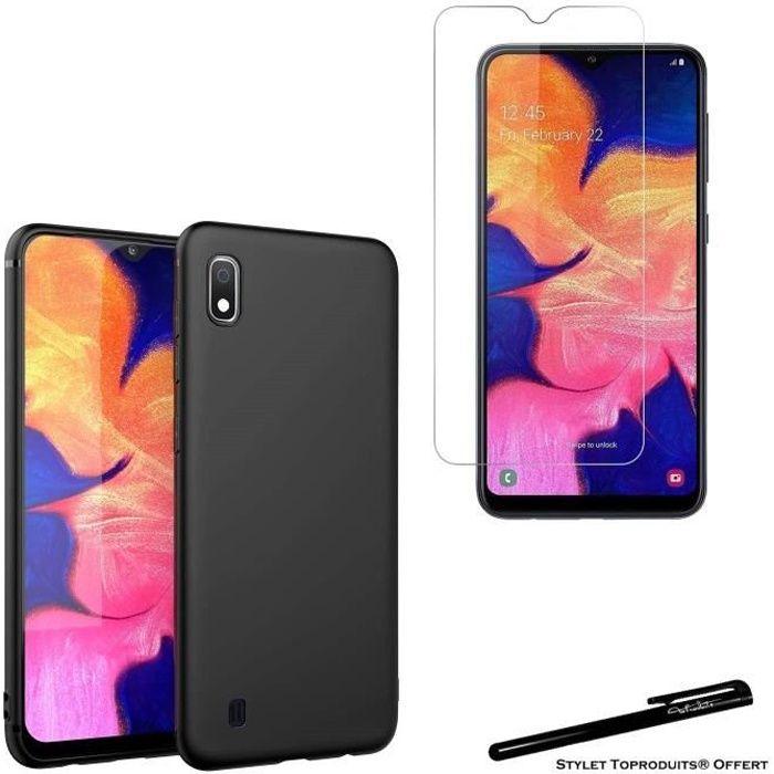 Tempered Glass for Samsung A10 and Soft Black Protective Case with Toproduits® Stylus