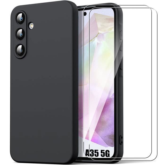 Case - Booling - for Samsung Galaxy A35 5G - Liquid Silicone - Shockproof - Black - 2 Tempered Glass