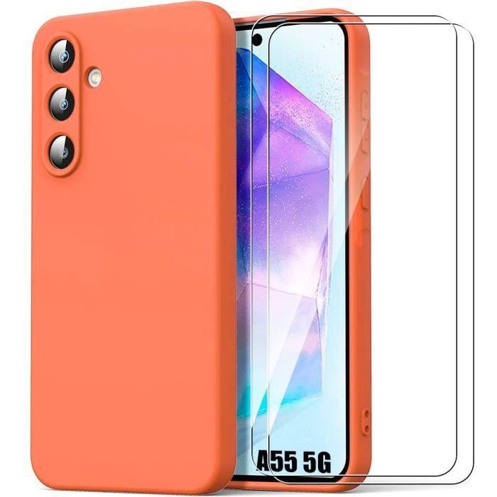 Protective Case - BOOLING - for Samsung Galaxy A55 5G - Shockproof Slim Silicone - Matte Orange - 2 Tempered Glass