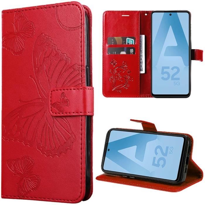 Case - BOOLING - for Samsung Galaxy A52 4G/5G - Red PU Leather - Butterfly Pattern - Magnetic Closure
