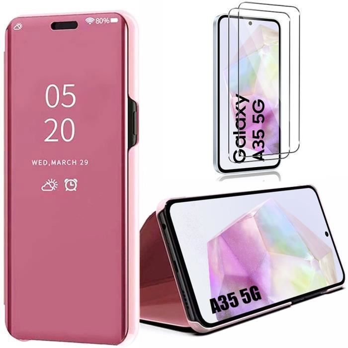 Coque de protection - BOOLING - pour Samsung Galaxy A35 5G - Flip Cover 360° - Antichoc - Effet Miroir - Rose