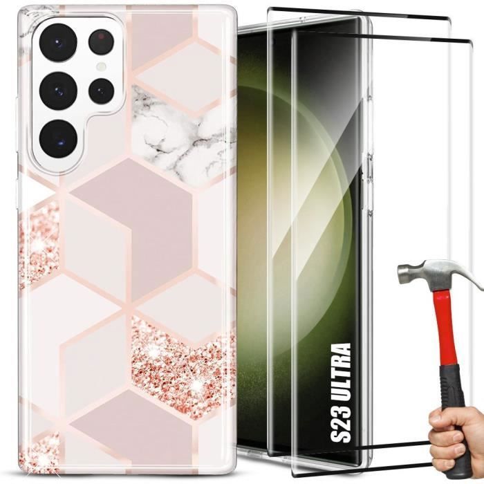 Protective Case for Samsung Galaxy S23 Ultra - BOOLING - Pink Marble Pattern - Slim - Shockproof - 2 Tempered Glasses