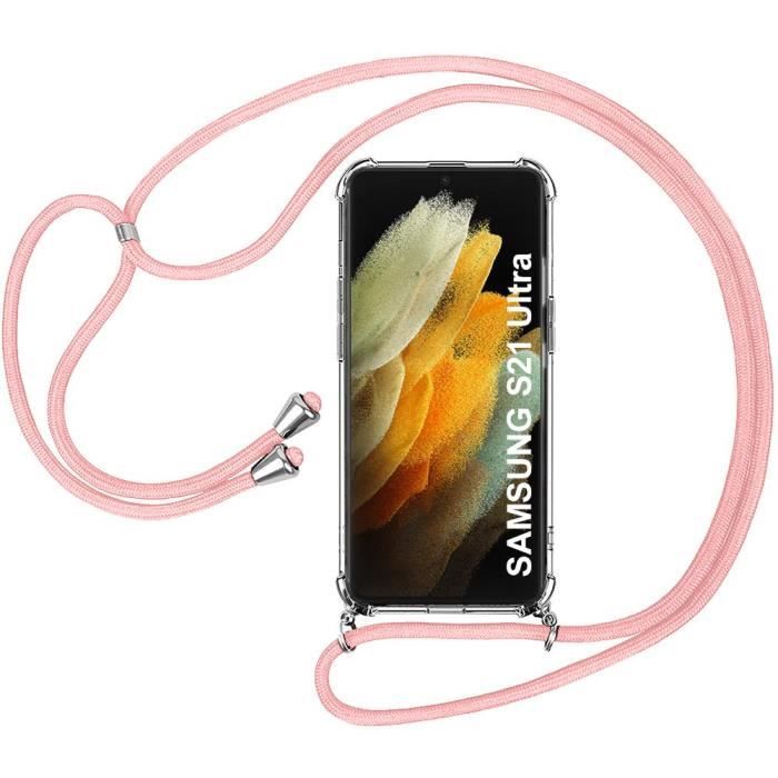 Protective Case - BOOLING - for Samsung S21 Ultra - Protection - Transparent - Pink Chain