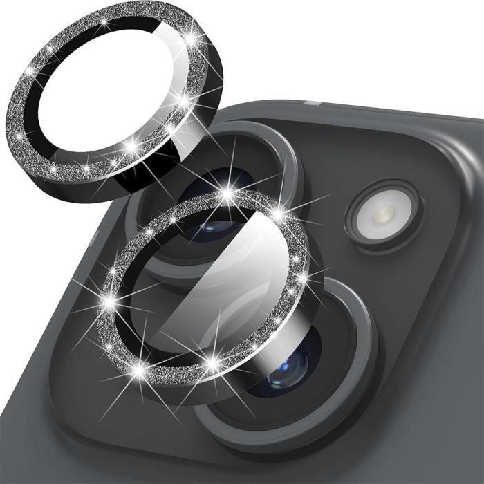 Tempered Glass Camera Protector for iPhone 15 and iPhone 15 Plus - 9H Rigid Glossy Black Contour