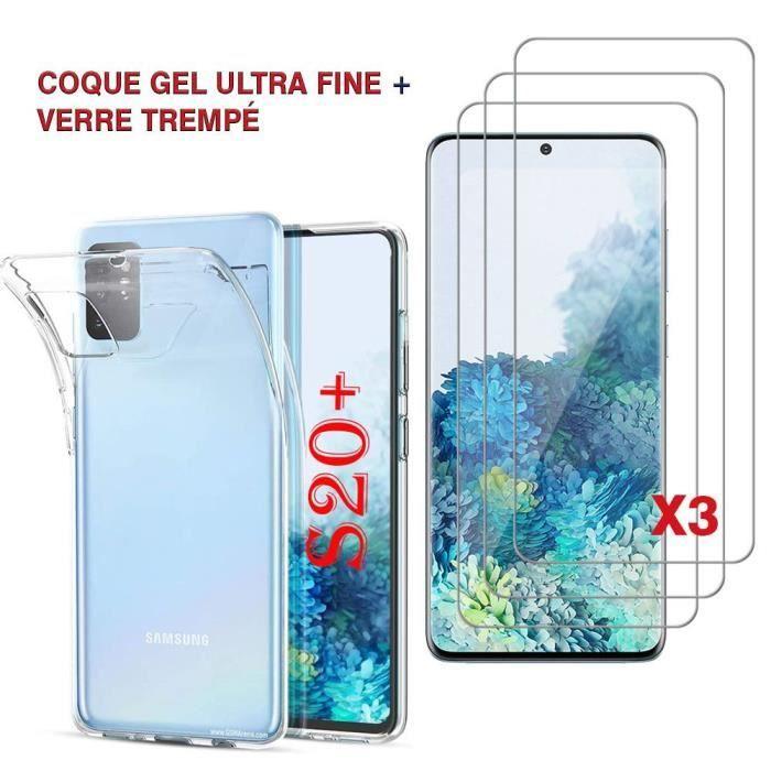 Case - Samsung - Galaxy S20+ Plus - Silicone Gel UltraSlim - Transparent - 3x Tempered Glass