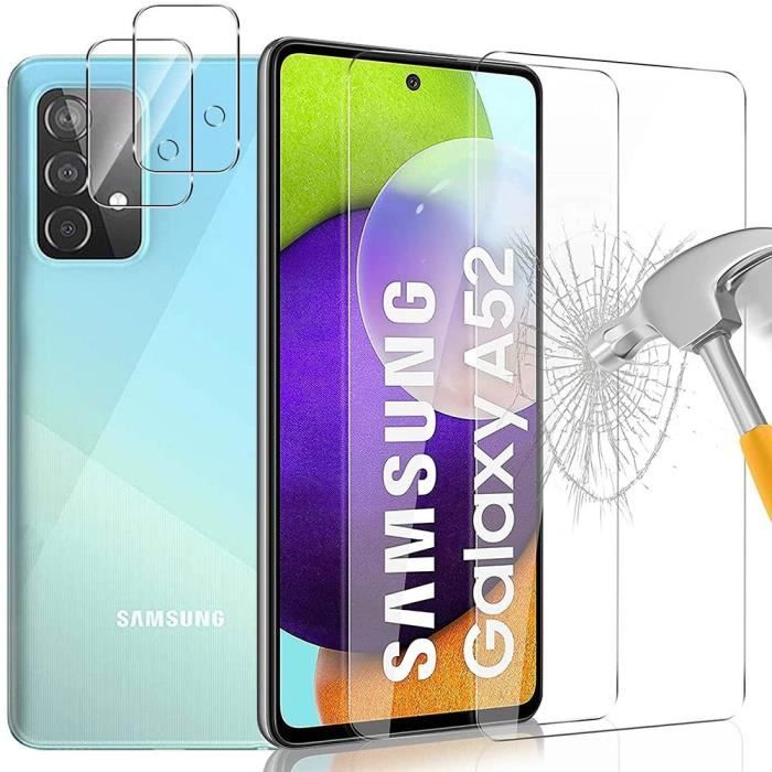 Coque de protection - BOOLING - pour Samsung Galaxy A52 - Silicone - Verre Trempé - Noir Transparent - avec 2 Verres Trempés