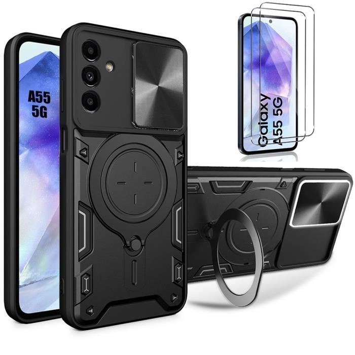 Protective Case - BOOLING - for Samsung Galaxy A55 5G - Shockproof - Camera Protector - Stand - with 2 Tempered Glasses