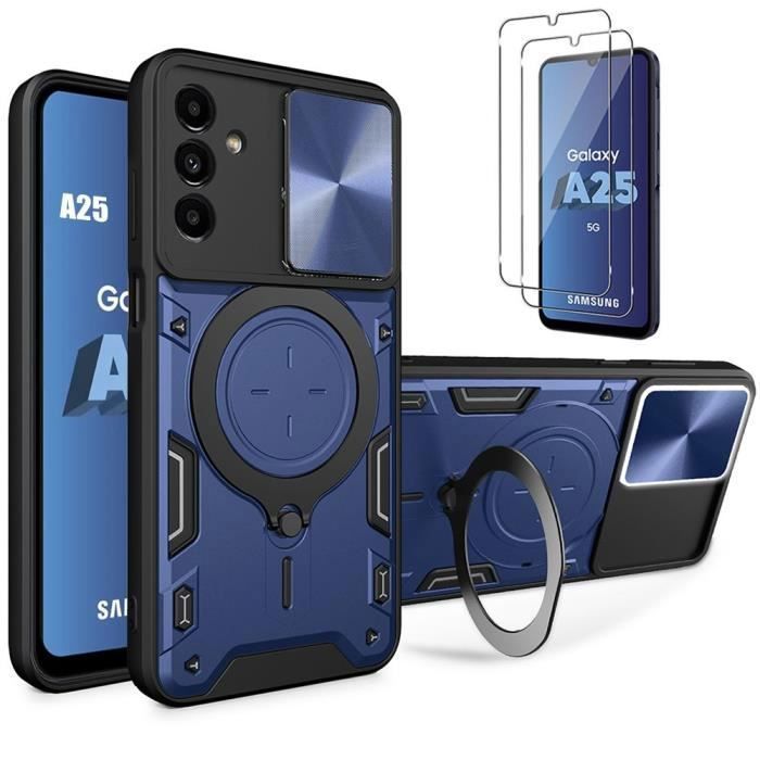 Coque de protection - BOOLING - pour Samsung Galaxy A25 5G - Antichoc en PC - Support Métal 360° - Bleu Marine