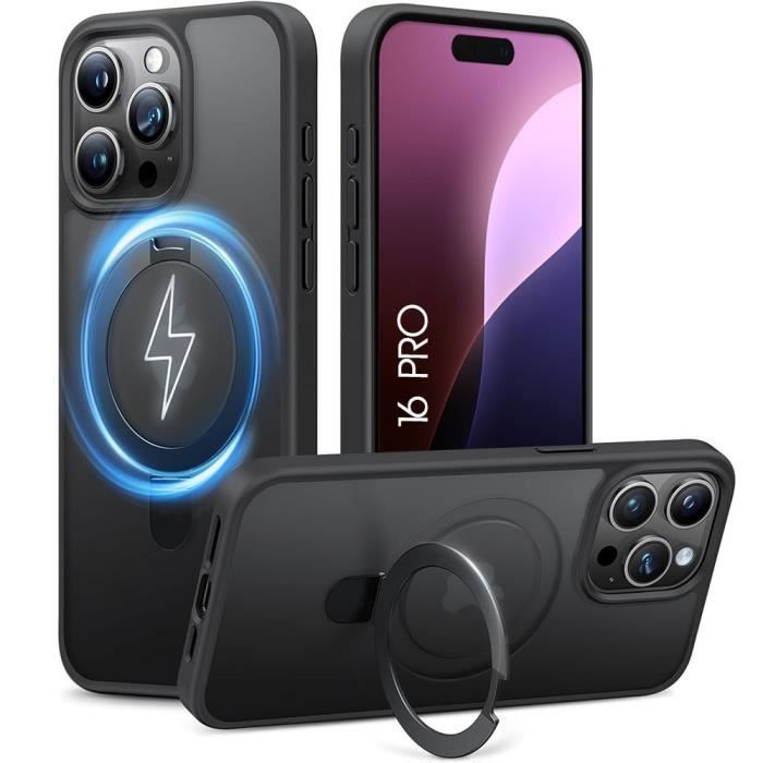 Protective Case for iPhone 16 Pro - BOOLING - Black - Rigid - Built-in Magnetic Support - Translucent