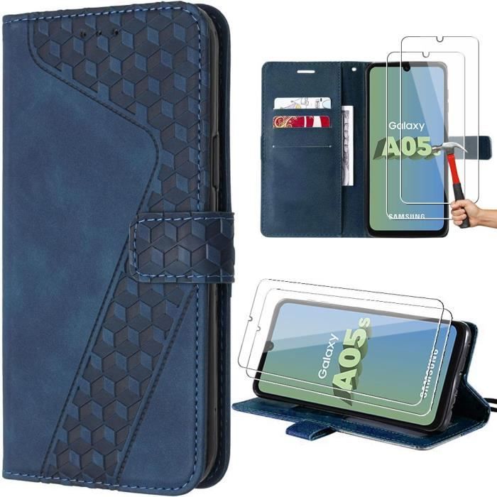 Protective Case - BOOLING - for Samsung Galaxy A05s - Navy Blue PU Leather - Card Pocket - Multi-Position Stand
