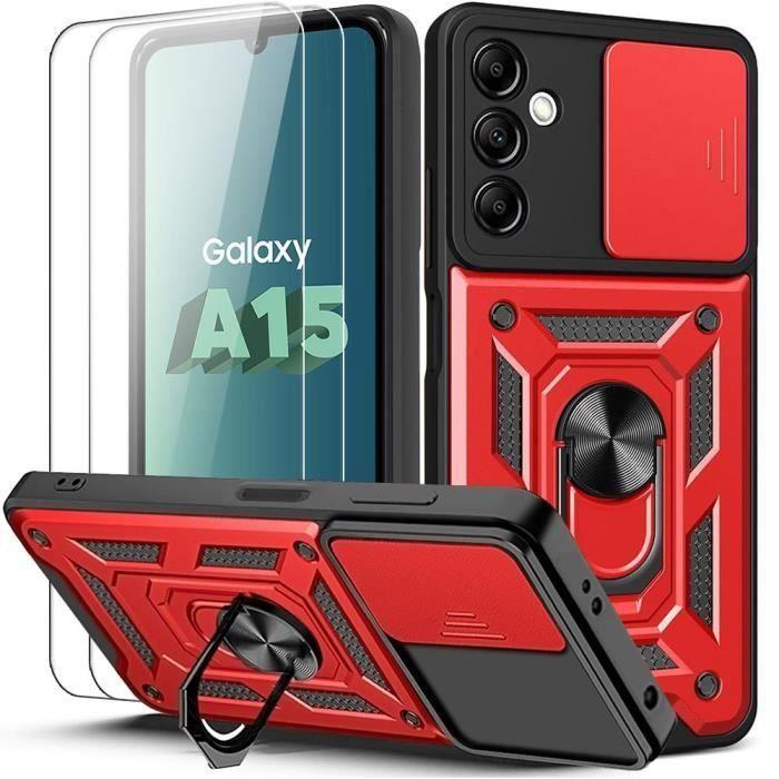 Coque de protection - BOOLING - pour Samsung Galaxy A15 A15 5G - Antichoc - avec Anneau - Rouge - 2 Verres Trempés