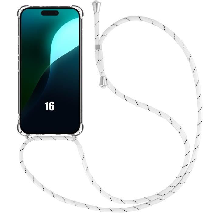 Coque Silicone pour iPhone 16 - AntiChoc Anti-Rayures Transparent avec Cordon Blanc