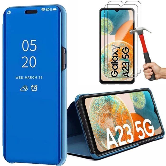 Lot 2 Verres Trempés+ Coque pour Samsung A23 5G Bleu Protection 360 Degré Anti-Rayure Anti-Choc Intégrale