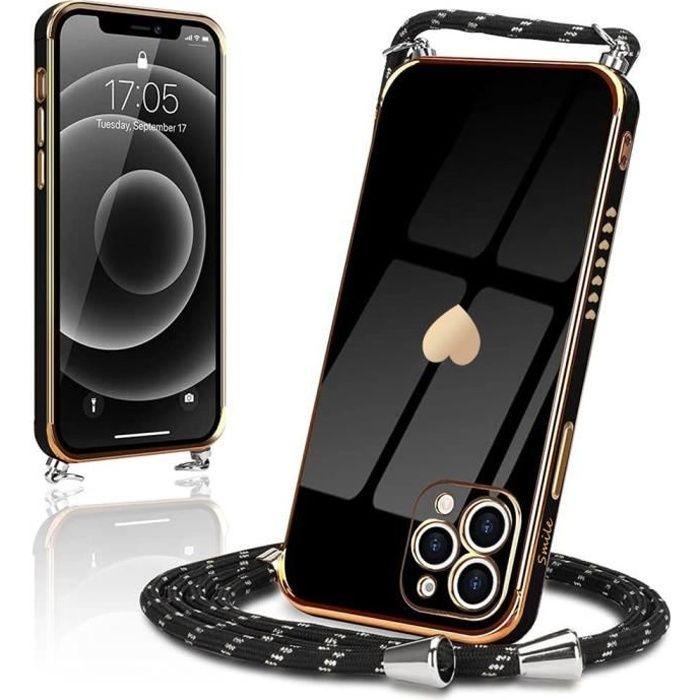Case with Lanyard Necklace - Luxury - for iPhone 13 Pro Max - Black - Shockproof - Heart Pattern