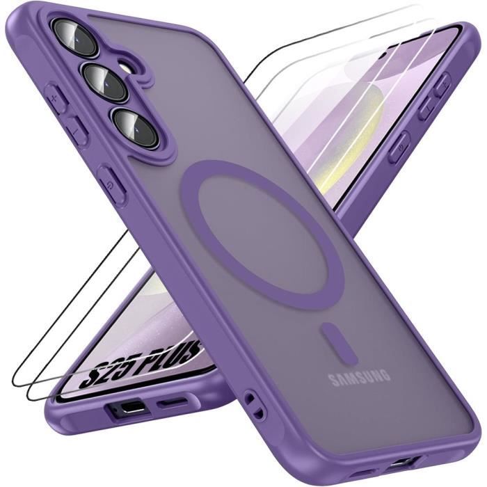 Coque et 2 Verres Trempés pour Samsung Galaxy S25 Plus (Galaxy S25+) avec Cercle Magnétique Protection Caméra - Violet