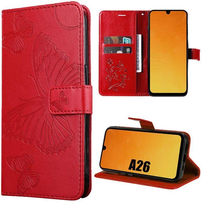 Protective Case - BOOLING - for Samsung Galaxy A26 5G - Shockproof - PU Leather - Red Butterfly