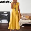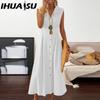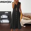 IHUASU A-line Dress Elegent Beauty Lady Dress Single-breasted Long Dress with A Large Hem Solid Color