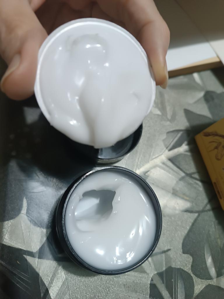 The lid is all scratched, there is no protective film between the cream and the lid, it is unknown who already opened it before me.. I will not use it, money down the drain. The color and smell are good.