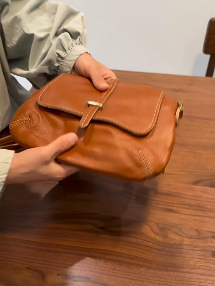 Johnature Retro Genuine Leather Messenger Bag Versatile Lightweight Women Small Bag Commuter Shoulder Crossbody Bags