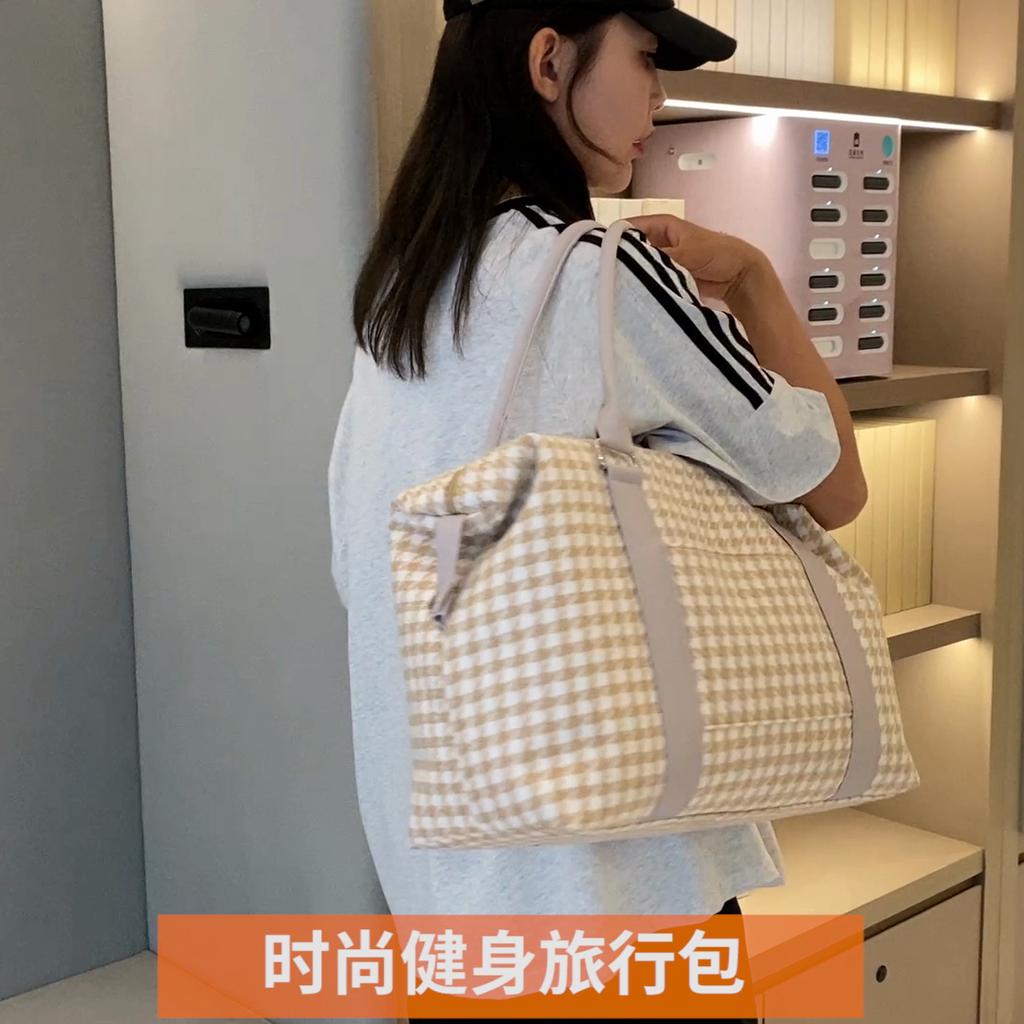Large Capacity Luggage Bag Canvas Gym Bag Houndstooth Lightweight Storage Bag