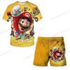 2025 MINISO Children's Clothing Sets Cosplay Super Mario T-shirts Shorts 2 Pcs Suits Kids Boys Girls Tops Tee Mario Bros T-shirt Pants Suit