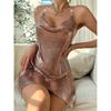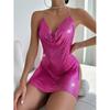Women Nightclub Backless Metallic Sequin Spaghetti Strap V Neck Halter Split Dress Elegant Party Dress For Evening Wear