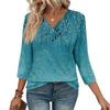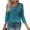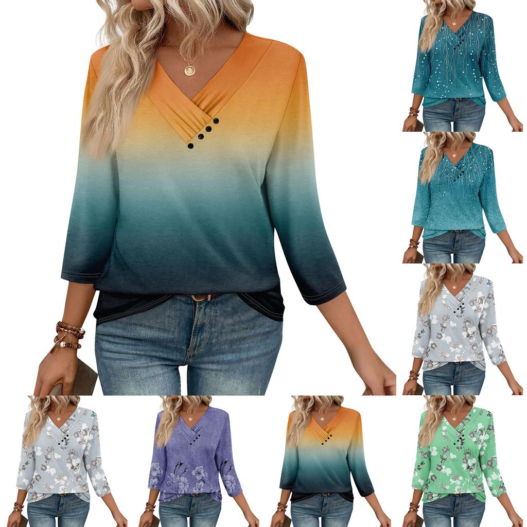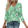 Womens 3/4 Sleeve Daily Weekend V Neck Casual Printed Tshirts Loose Fit Pleated Tees Button Down Shirts
