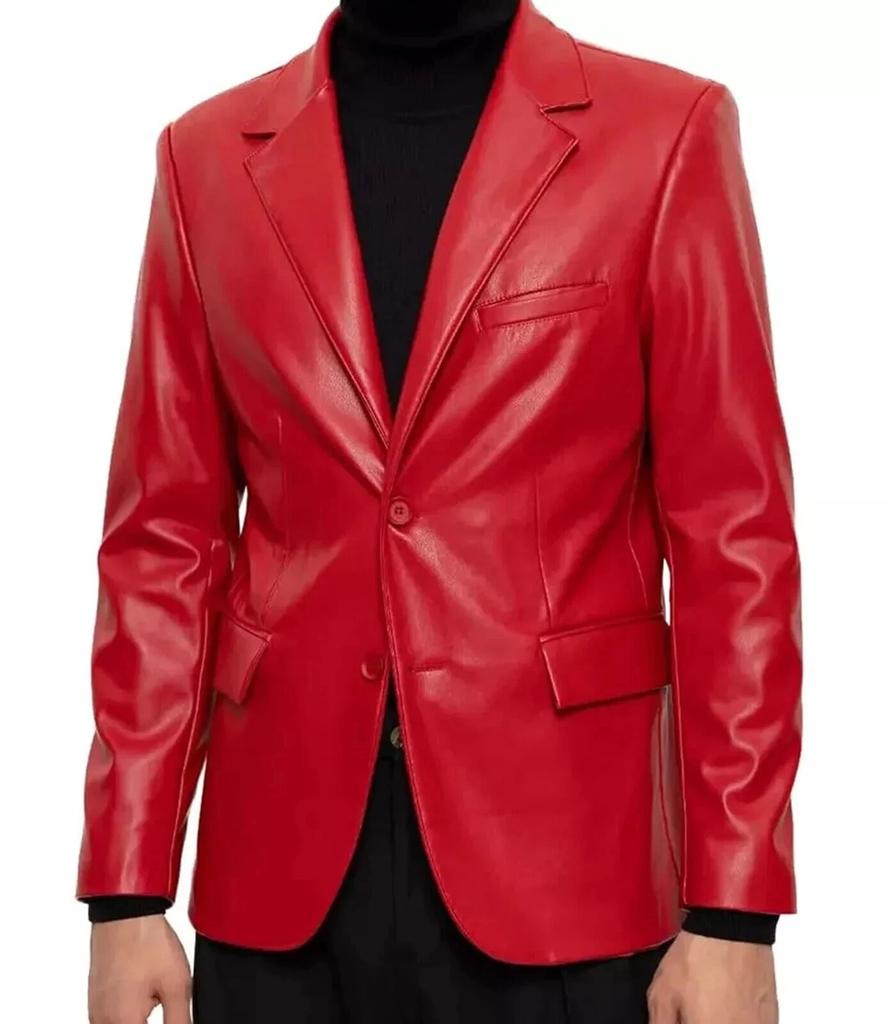 Lambskin Formal Stylish Fashion Soft Men Blazer Red Handmade Genuine Leather