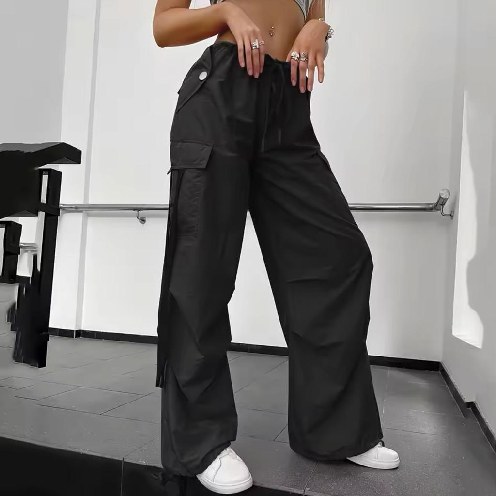 Spring and Summer Rose Red Work Pants for Women's Summer New Style Bow Drawstring Wide-leg Sports Pants
