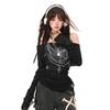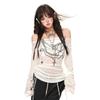 Japanese Y2k Knitted Tops Grunge Tattoo Print Long Sleeve T-shirt Ribbed Vintage Harajuku Shirring Knitwear 2000s Gothic