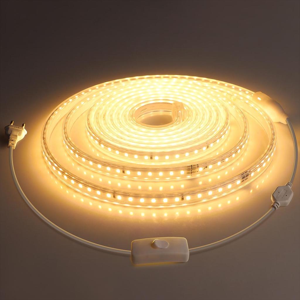 With EU Plug LED Strip Light 220V 2835 Waterproof LED Strip High Brightness 60LEDs/Meter Flexible Kitchen Outdoor Garden LED Light