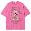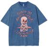 Pink Skull Print Women's Washed Denim T-Shirt Oversized Unisex Half Sleeve Spoof High Street Harajuku Style Summer
