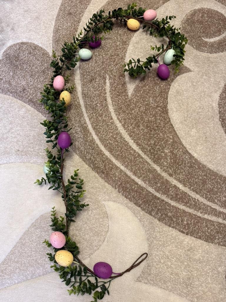 1pc 66.9 Inch Handmade Easter Garland, Indoor/Outdoor Decor with Mini Eggs and Eucalyptus Leaves for Easter Celebration