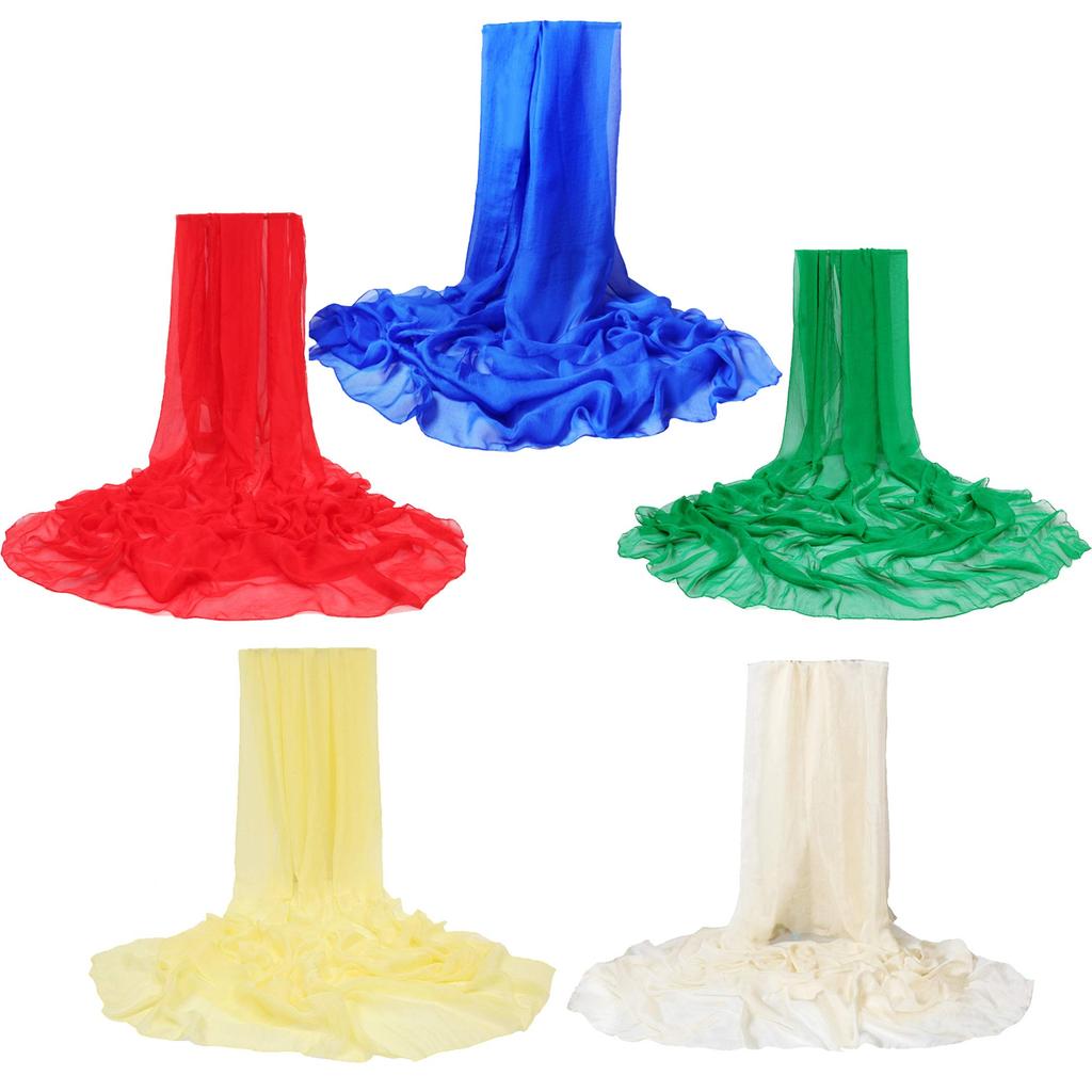 Great for a variety of occasions: This is a set of 5 large chiffon scarves that are easy for people of all ages to use. Great for a variety of occasions, including eurhythmics, music therapy, rhythmic play, and scarf play. Try using your favorite colors in each situation.