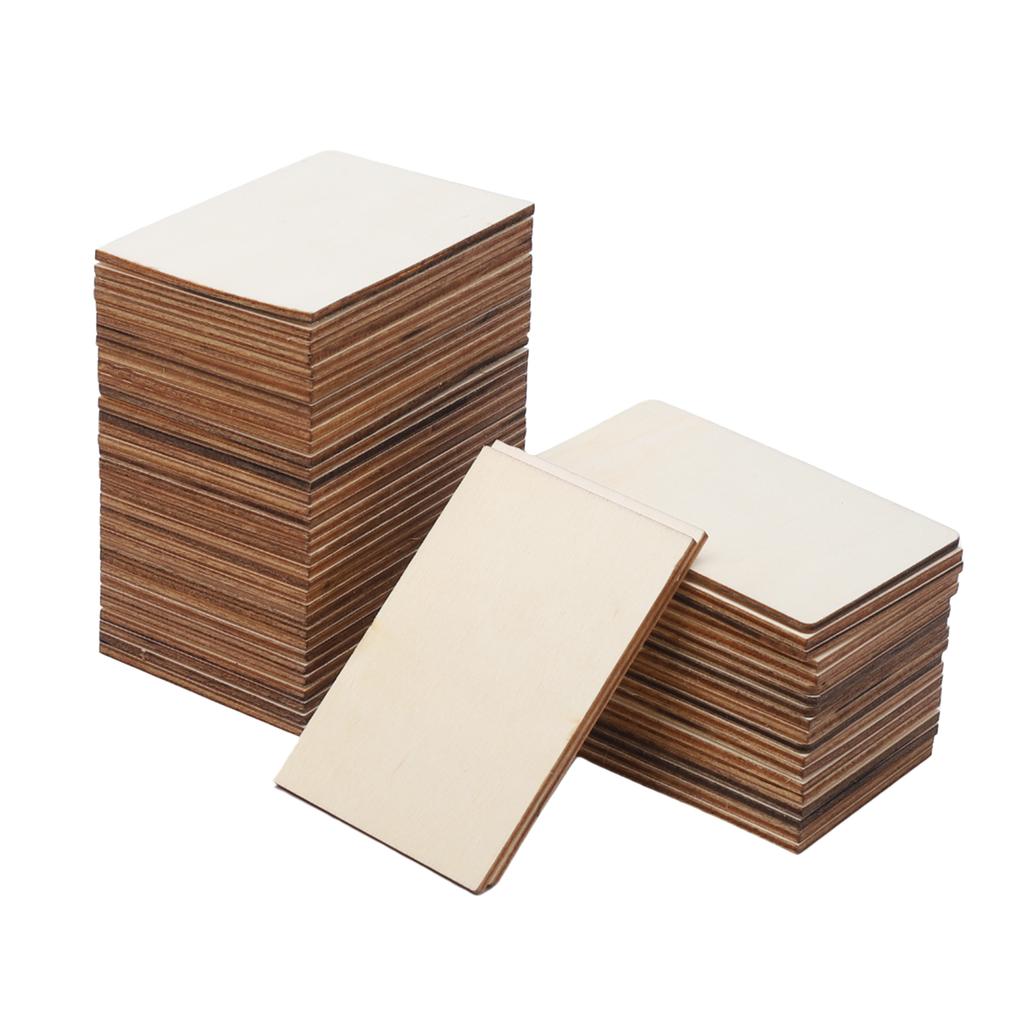 50 Pieces Unfinished Square Wood Slices Blank 3.5 X 2.3 Inches Rectangle Chips For Painting DIY Craft Decoration