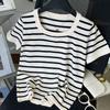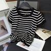 Striped Short-sleeved Large-sized T-shirtSquare-neck Knitted Base Shirt Summer Short Fitted Top