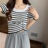 This chic and modern women's summer t-shirt features a classic black and white striped pattern, epitomizing timeless French style. Crafted from high-quality polyester, it ensures a lightweight and breathable feel, perfect for warm weather. The short sleeves and U-neck design add a touch of elegance and comfort, making it an ideal choice for casual outings or relaxed gatherings. Whether paired with jeans or a skirt, this versatile piece is a must-have addition to any wardrobe.