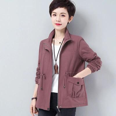 Double Layer Women Plus Size Spring Autumn Korean Plus Size Lining Windbreaker Drawstring Waist Stand Collar Jacket