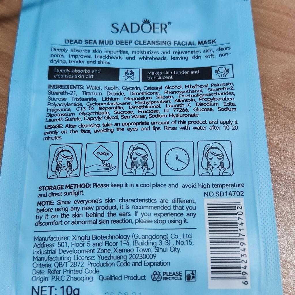 Dead Sea Mud Cleansing Mask SADOER Deep Cleansing Blackhead Removal Mask