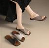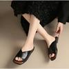 Korean Version of Temperament Cool Slippers for Women To Wear 2024 Summer New Square-headed Open-toed Simple Flat-bottomed Casual One-word Slippers