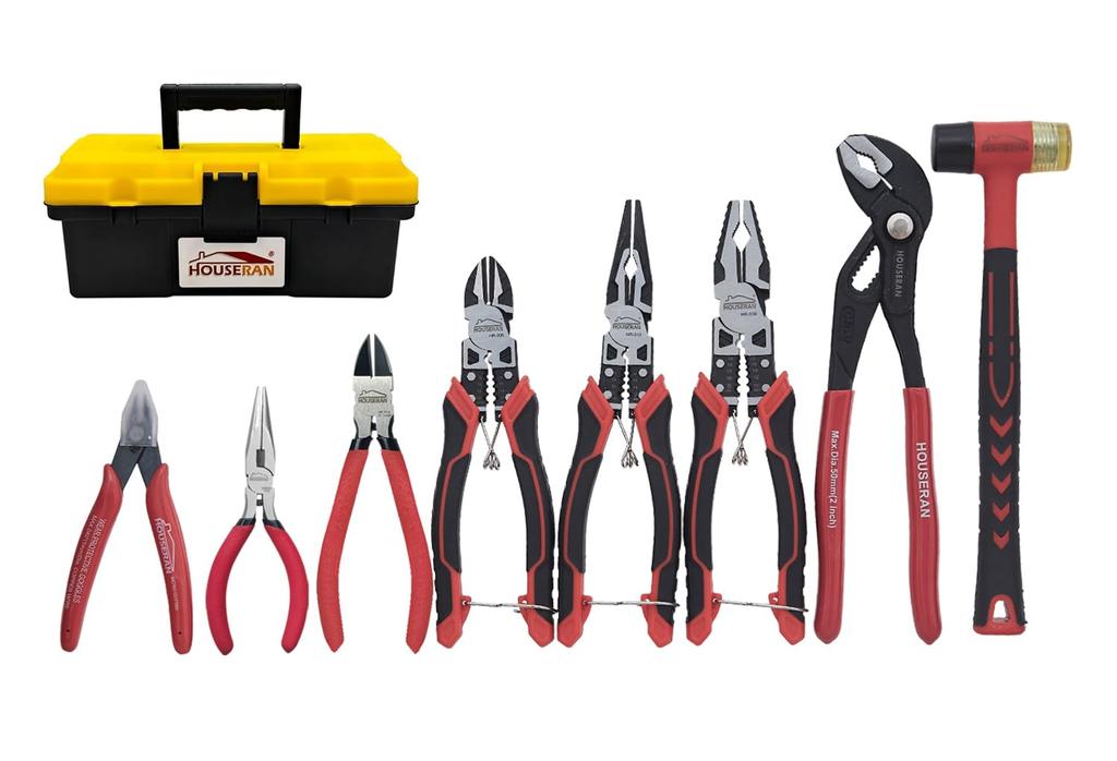 HOUSERAN Radio Water Pump Rubber Tool Case Included Nippers, Pliers, Pliers, Pliers, Hammer, 8-Piece Set, (Tool 8-Piece Set)