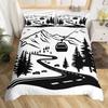 Ski Theme Duvet Cover Green Pine Cable Car Bedding Set Country Style Three-Piece Set