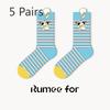 5 Pairs of Female Spring and Autumn New Student Cartoon Boneless Stripe Deodorant Wicker Socks