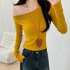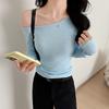 Korean Wrinkled Cotton Slanted Shoulder Long-sleeved T-shirt for Women In Summer New Irregular Off-shoulder Base Shirt To Make Them Look Slim and Slim