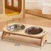 Elevated Pet Bowls Tilted Single/Double Cat Stainless Steel Food Bowls Wooden Dog Water Feeding Container Cat Supplies