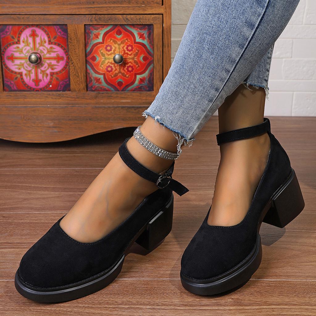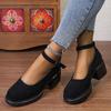 2024 New European and American Round Head Thick Heel One-word Buckle with Middle Mouth Breathable Casual Outer Wear Single Shoes Women