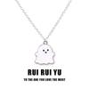 Black and White Ghost Necklace: Halloween Pendant Two-Piece Set for Girlfriend or Couple, Back-to-School Gift